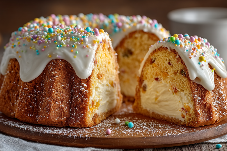 Почему такой кулич не черствеет 3 дня? Секрет — в креме внутри. Кулич разрезают, вынимают мякиш, заполняют кремом и закрывают обратно.