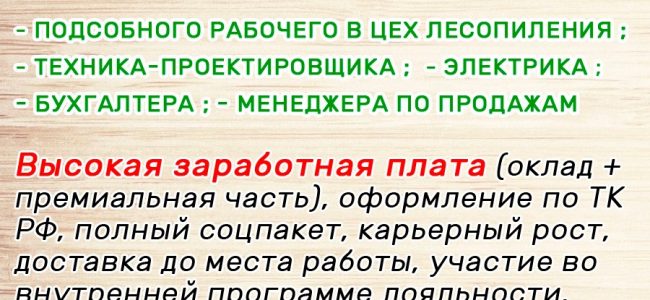 На пилораму требуются оператор и помощник оператора (д. Рябиновщина). Доставка до места работы, достойная зарплата. Контактный телефон: 89123355033