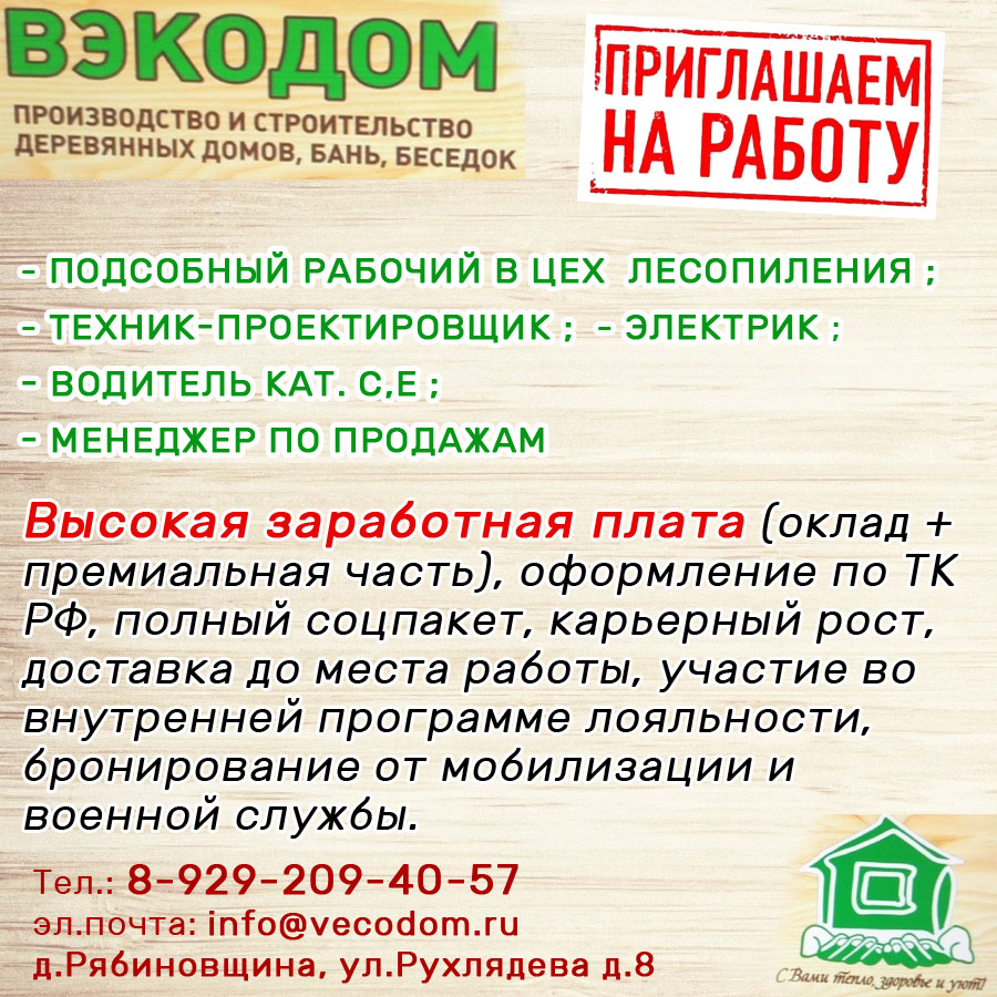 Набирается бригада на пилораму. Достойная зарплата, выплаты 2 раза в месяц, официальное трудоустройство, доставка до места работы(д. Рябиновщина)