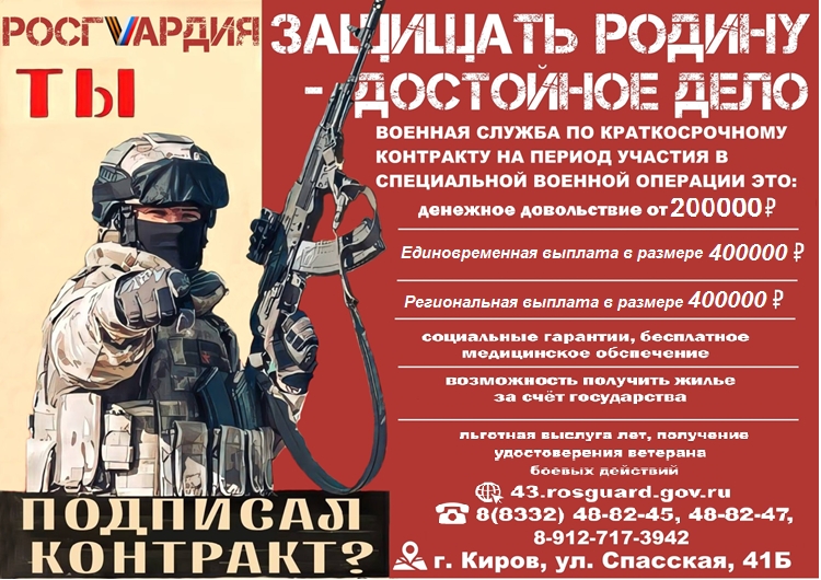 Прохождение военной службы по контракту во вновь сформированной воинской части войск национальной гвардии на новых территориях Российской Федерации.