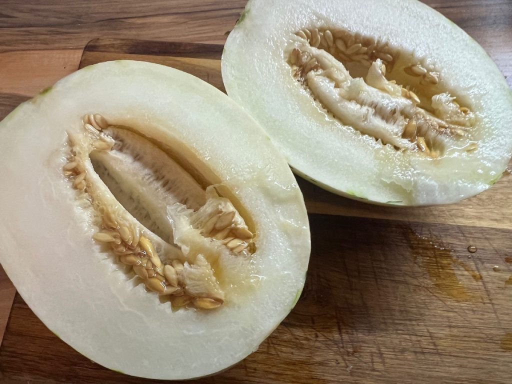 Нарезала дыню — мякоть белоснежная, сочная до невозможности, и сладость такая, что сразу вспомнилась летняя полуденная жара и освежающий вкус. Вкус — мягкий, но насыщенный, настоящий медовый десерт. Сочная и упругая, она буквально тает во рту, не оставляя привкуса кислоты или горечи.