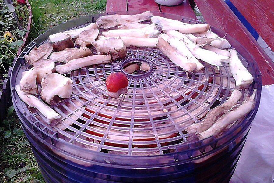 Этот метод особенно подходит для червей в белых грибах и других видов, которые хорошо переносят сушку. Черви не любят сухой воздух и выползают из грибов в процессе сушки. После этого сушёные грибы можно обработать, например, измельчить в порошок или использовать для приготовления супов и соусов.
