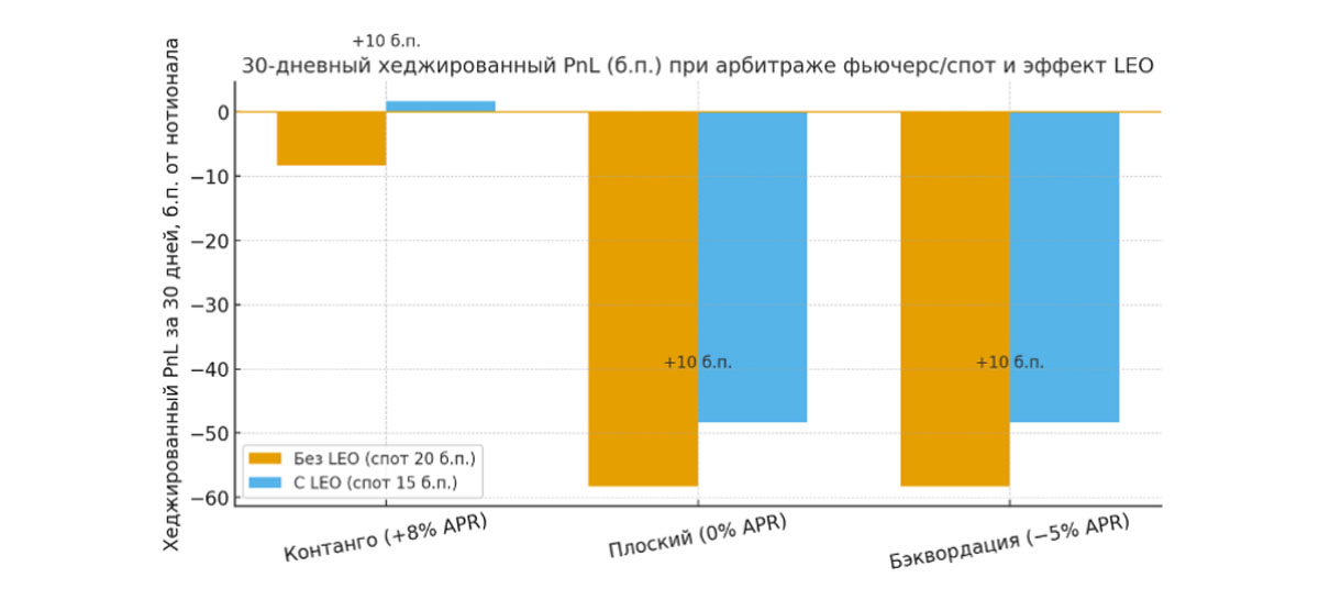 Здесь LEO снижает суммарные издержки по всем «ногам» сделки и облегчает тестирование более сложных моделей.