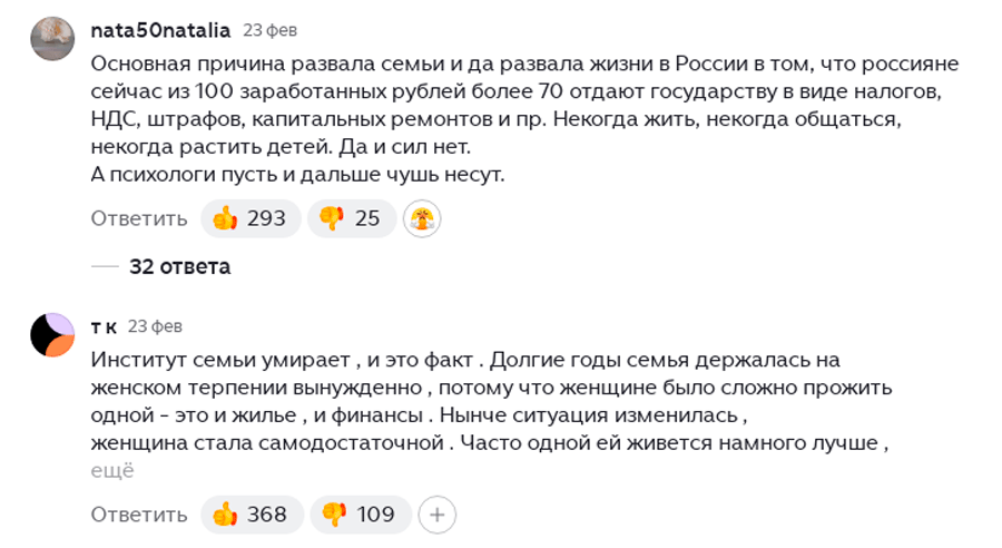Из-за чего же сейчас разводятся…