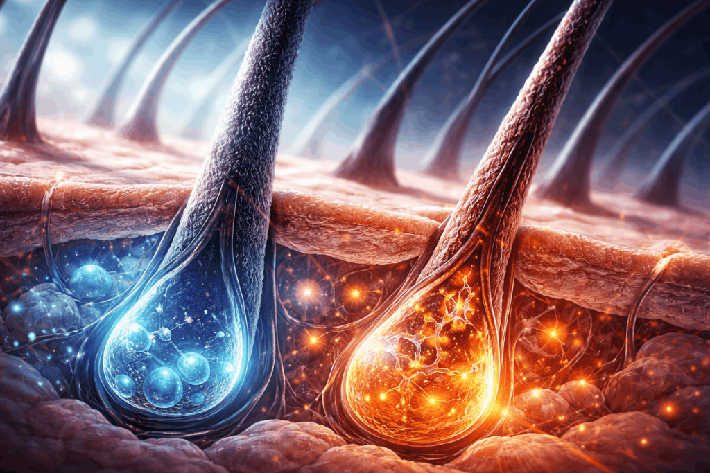 В центре внимания оказались стволовые клетки меланоцитов. Именно они отвечают за цвет волос и кожи. В норме эти клетки регулярно обновляются и вырабатывают пигмент. Но при генотоксическом стрессе (из-за радиации, ультрафиолета или химических веществ) у них появляется выбор: